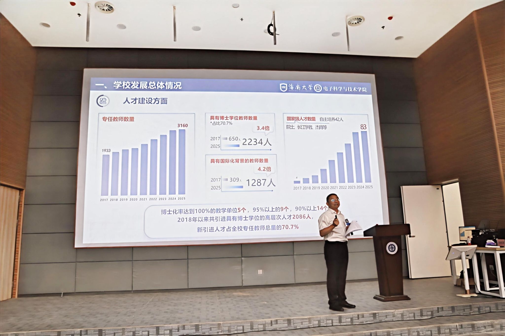 9月21日下午14:30,永利3044集团2025级新生开学典礼在信息科技大楼二楼报告厅隆重举行。学院院长刘马良、党委书记林华、副院长王冠军、副院长李娜、教师代表王微微教授、简明朝博士、王诗兆博士、何政博士、夏迎军博士、徐鹏博士、杨德坤博士、吴迪博士、教研办、综合办、老生代表乔馨驰、新生代表张广宇和2025级全体新生共同参会。学院邀请海德书院韩胜丁书记、南海书院王一凡副书记致辞,中国南海研究院处长林勇新做关于南海形势的报告。会议由副院长王冠军主持。