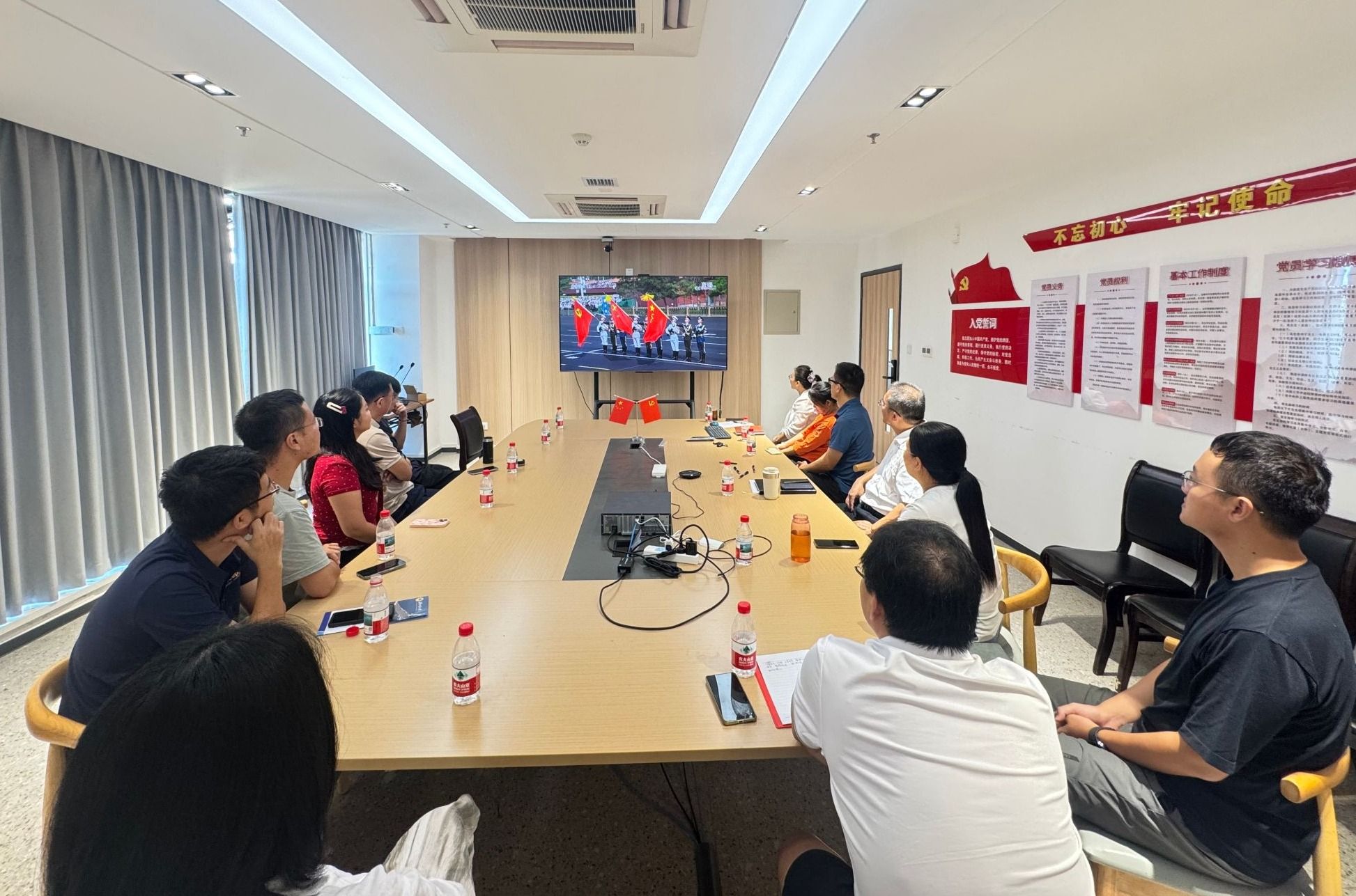 全院教职工在信息科技大楼507会议室收听收看中国人民抗日战争暨世界反法西斯战争胜利80周年纪念大会直播。蒋启迪 摄